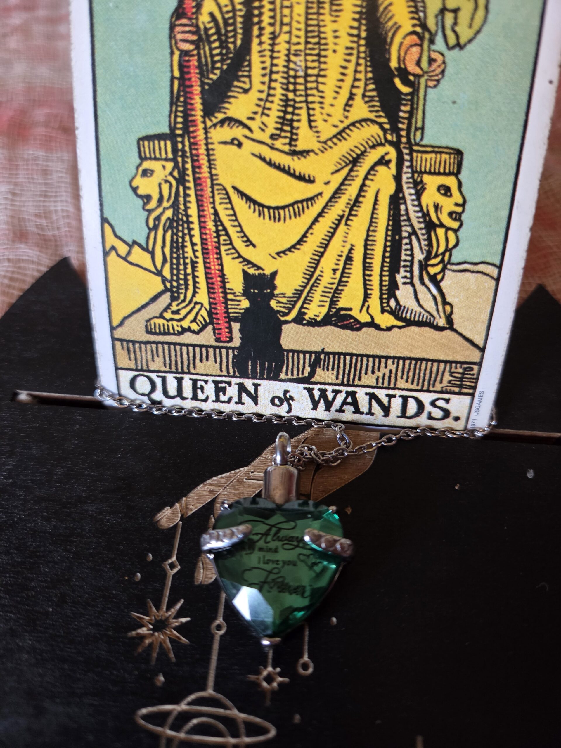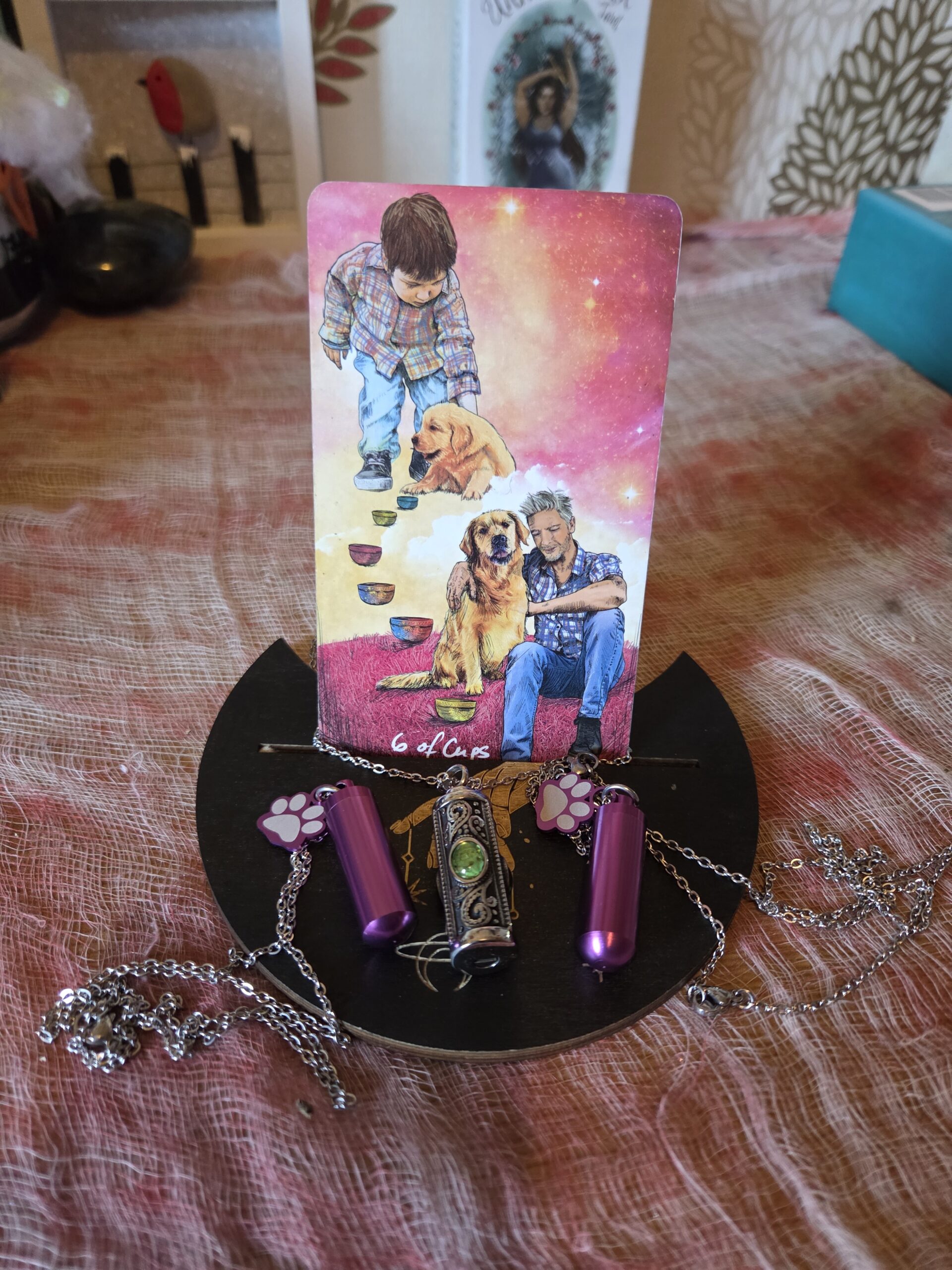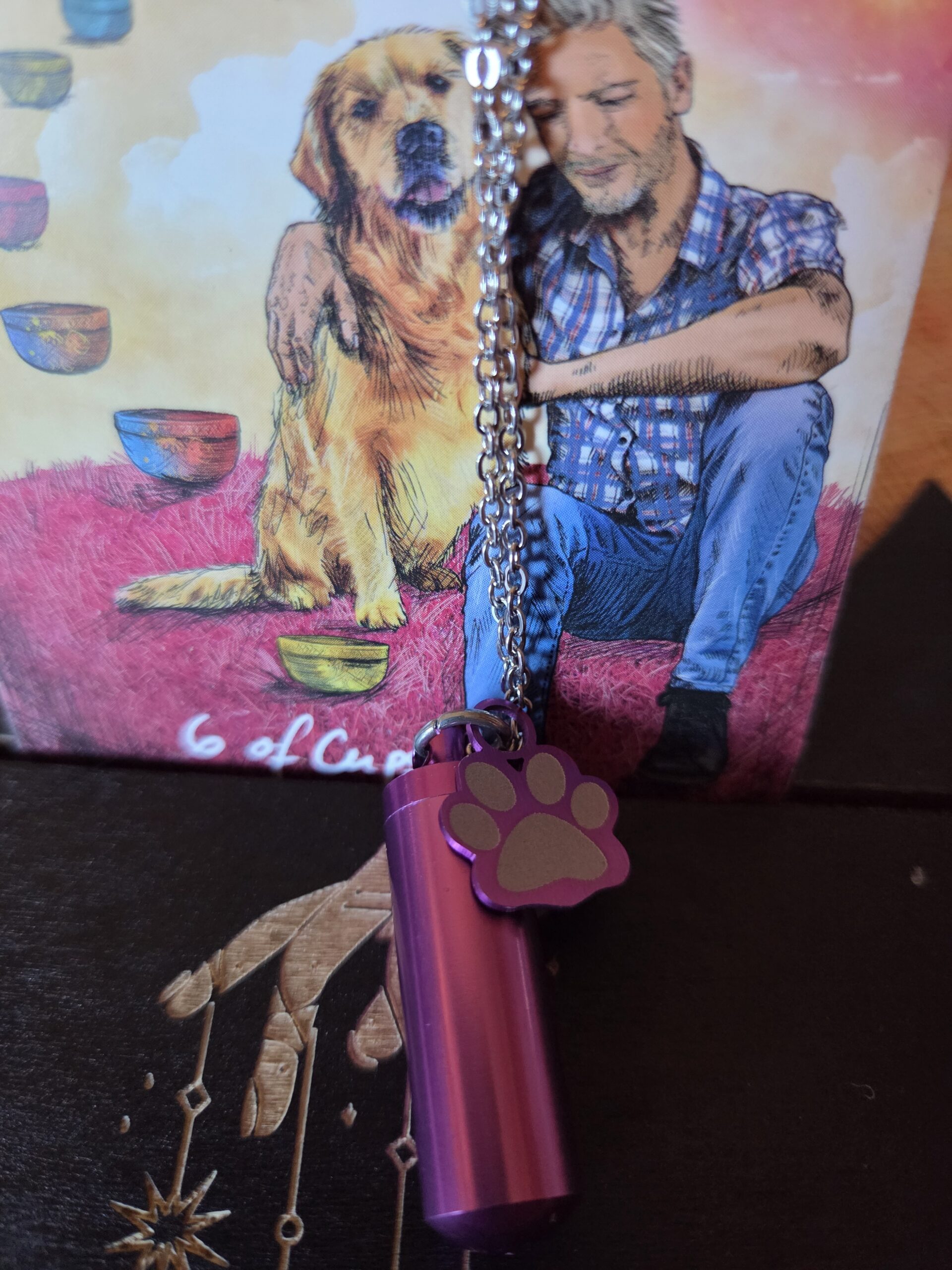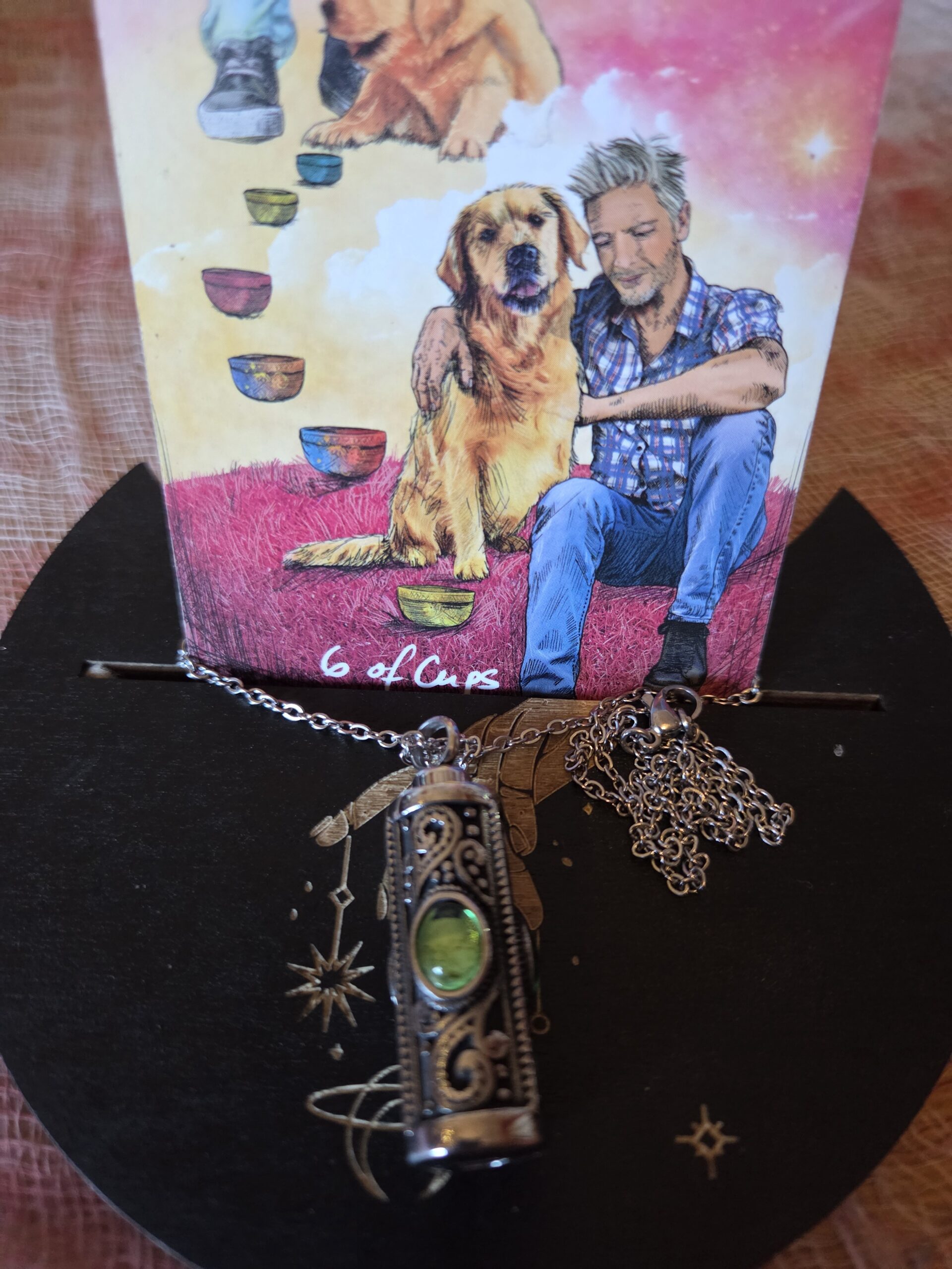 I would recommend sitting with your pet protection charm necklace and your pet, to form a connection between your pet, yourself and your magickal charm. Let your pet sniff the charm and get to know it. Tell your pet that the charm is intended to keep them divinely protected. Once you’ve set your intent, you can wear the necklace yourself. It’s ideal to pop on whenever you’re separated from your pet, to bring your pet some extra protection. Pet safety comes first, but it could also be possible to twine the necklace through your pet’s leash.